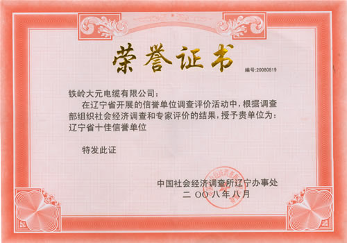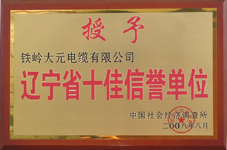 辽宁省十佳信誉单位